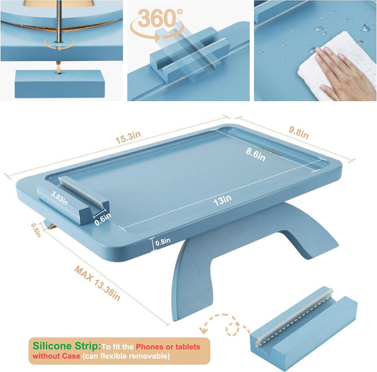 Sofa Arm Clip on Tray Table,Bamboo Couch Table for Wide Side Table, Armrest with 360° Phone Holder,Portable TV Table,Sofa Eating and Drink Blue
